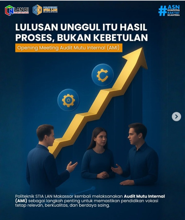 Politeknik STIA LAN Makassar kembali melaksanakan Audit Mutu Internal (AMI) Tahun 2025 sebagai komitmen untuk memastikan seluruh proses pembelajaran berjalan sesuai standar terbaik.